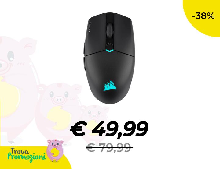 ๐๐ผ Corsair KATAR ELITE WIRELESS Mouse Gaming - Peso Piuma, Sensore Ottico MARKSMAN 26.000 DPI, Inferiore a 1 ms Connessione SLIPSTREAM WIRELESS, Batteria Ricaricabile fino a 110 Ore di Autonomia - Nero
