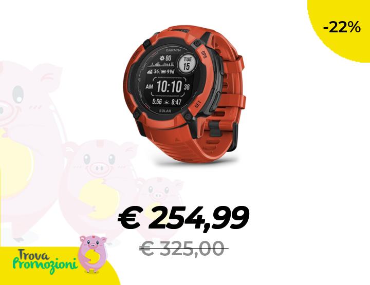 ๐๐ผ Garmin Instinct 2X Solar, Smartwatch, 50mm, Rugged design, Ricarica solare, Autonomia infinita, Display 1,1", Torcia LED, GPS Multi-banda, +30 app multisport, Pay, Connect IQ (Flame Red)