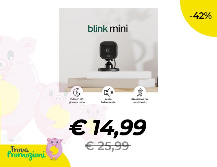 ๐๐ผ Blink Mini - Videocamera di sicurezza intelligente per interni, plug-in, video HD 1080p, rilevazione di movimento, audio bidirezionale, config. semplice, compatibile con Alexa | 1 videocamera (Nero)