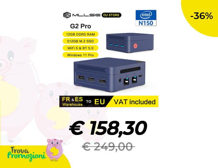 ๐๐ผ Processore MLLSE G2 Pro Mini PC Intel Twin Lake N150 LPDDR5 12 GB di RAM, 512GB SSD, Wi-Fi 5, BT5.0, Windows 11
