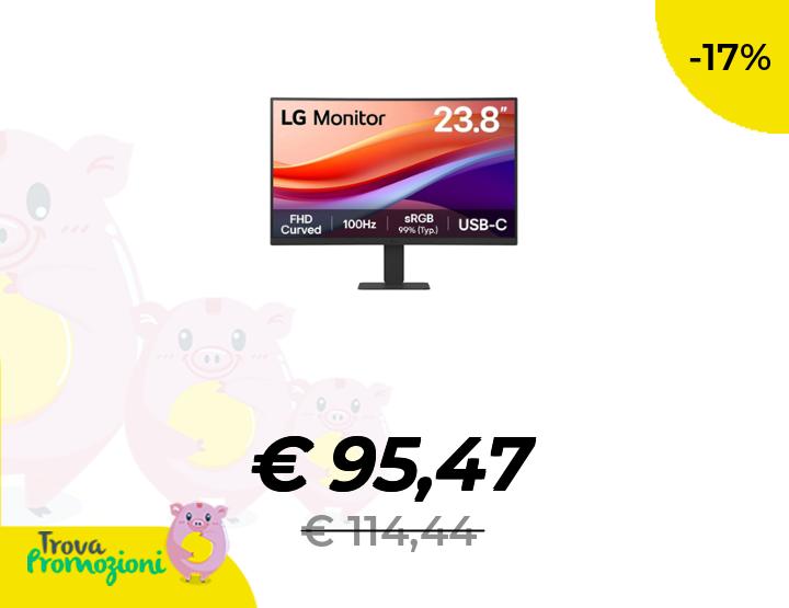 ๐๐ผ LG 24U421A-B - Schermo PC desktop da 24" - Lastra VA risoluzione FHD (1920x1080), 5ms 100Hz, HDR 10, sRGB 99% (CIE1931), inclinabile, curvo 1500R, HDMI 2.0, USB-C (15W)