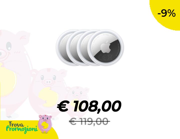 ๐๐ผ Apple AirTag in confezione da 4 (seconda generazione): utile per localizzare portachiavi, portafogli e molto altro; funziona emettendo un suono; si configura con un semplice tap da iPhone o iPad