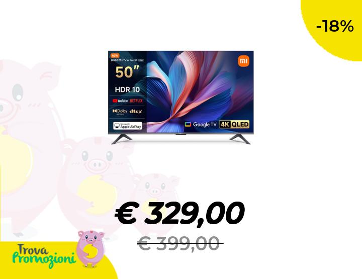 ๐๐ผ XIAOMI TV A Pro 50, 50 pollici (127 cm), 4K UHD QLED, Smart TV, Google TV, DVB-C/S/S2/T/T2, HDR10, Modalitร Game Boost 120Hz, MEMC, Controllo Vocale, 2GB+8GB, Apple Airplay & Google Cast