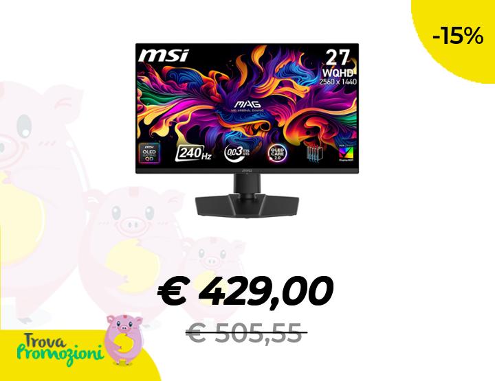 ๐๐ผ msi MAG 273QP QD-OLED X24, monitor Gaming 26,5" WQHD (2560 x 1440) QD OLED, refresh rate 240 Hz, tempo di risposta 0,03 ms, 99% DCI-P3, E โค 2 - DisplayHDR True Black 400, DisplayPort 1.4a, HDMI 2.1