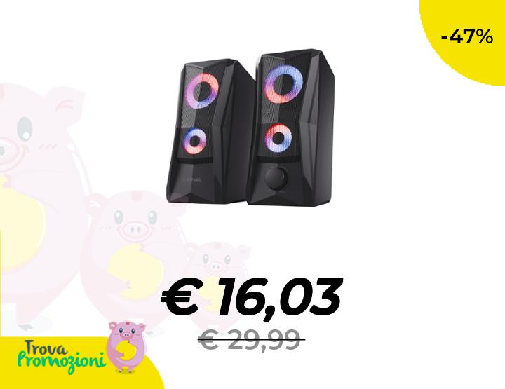 ๐๐ผ GXTrust 606B Javv Casse PC Gaming 2.0 con Illuminazione LED RGB, 12W (6W RMS), Alimentazione USB, Jack AUX 3.5 mm, Set di Altoparlanti PC da Gioco per Computer, Portatile - Nero