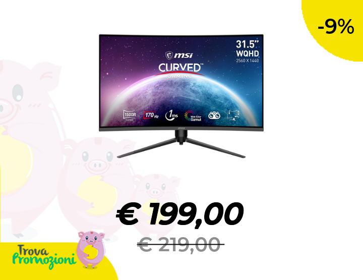 ๐๐ผ MSI G32CQ5P Monitor Gaming curvo WQHD 31,5" (80 cm) - Pannello VA 1500R (2560 x 1440), 170Hz / 1ms, Adaptive Sync, supporto regolabile a 3 vie - DP 1.2a, HDMI 2.0b CEC
