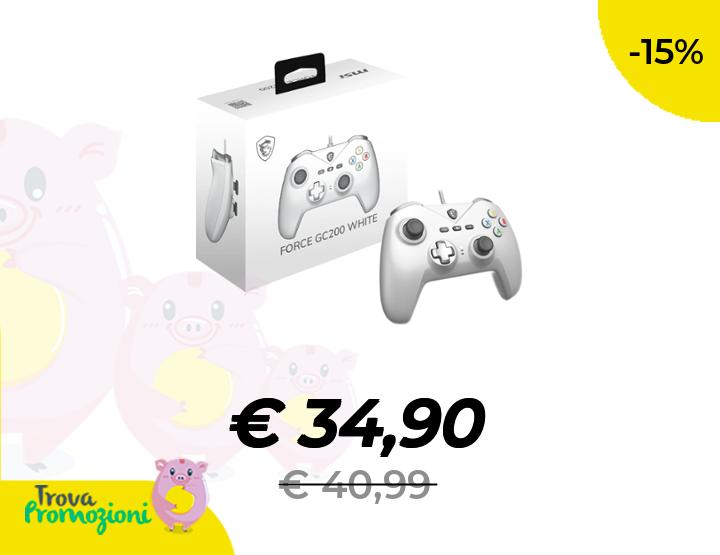 ๐๐ผ msi Force GC200 White - Controller Gamepad per PC cablato, trigger effetto hall, bastoncini analogici avanzati, motori a doppia vibrazione, USB 3.0 - cablati