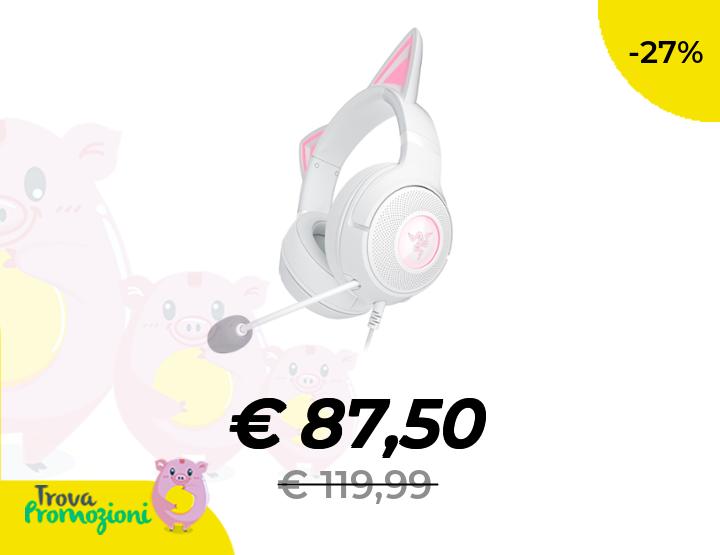 ๐๐ผ Razer Kraken Kitty V2 - Cuffia RGB cablata con orecchie Kitty per giochi e streaming (325 g, driver TriForce da 40 mm, microfono cardioide HyperClear, suono surround) Bianco
