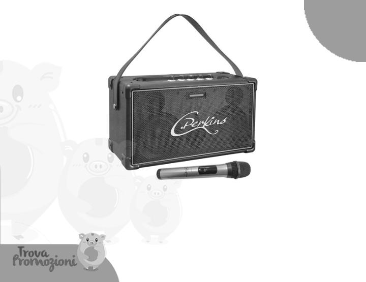 ๐๐ผ C.Perkins - NASHVILLE-SOUND - Altoparlante Bluetooth portatile a batteria ricaricabile - 1 microfono UHF - Bluetooth, USB, MicroSD, AUX, ingresso per microfono e chitarra - Similpelle