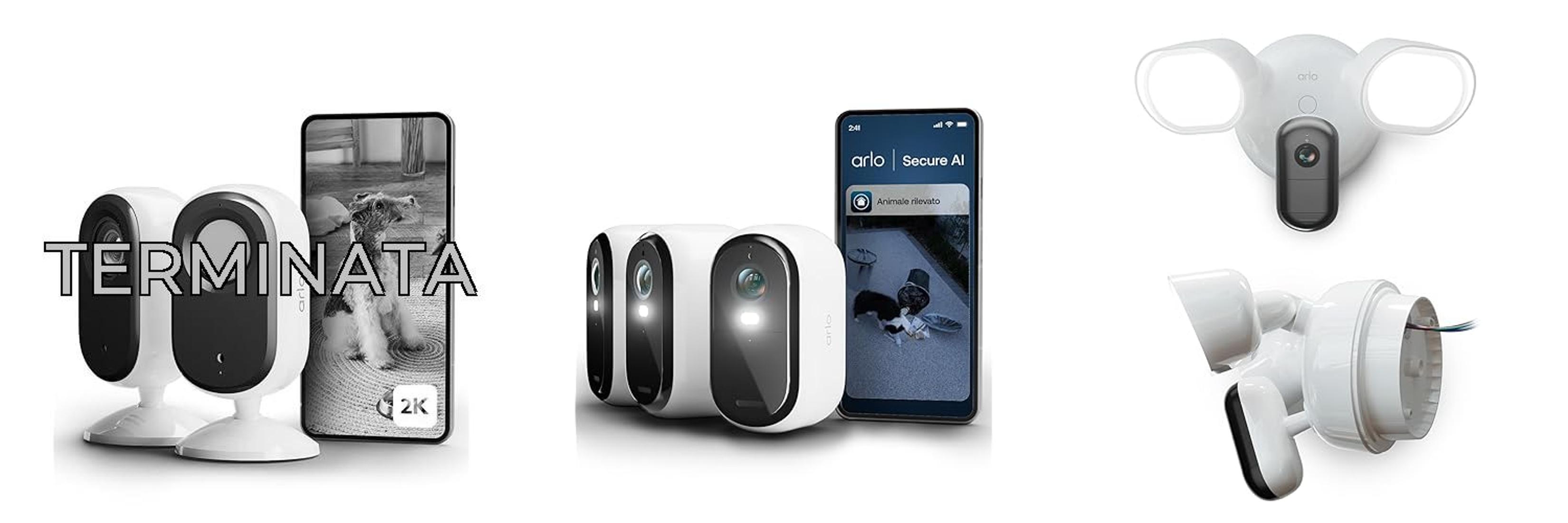 ๐๐ผArlo Essential 3 HD, videocamera WiFi esterna, batteria 6 mesi, visione notturna a colori, luce, sirena, audio bidirezionale, 3 camere bianche