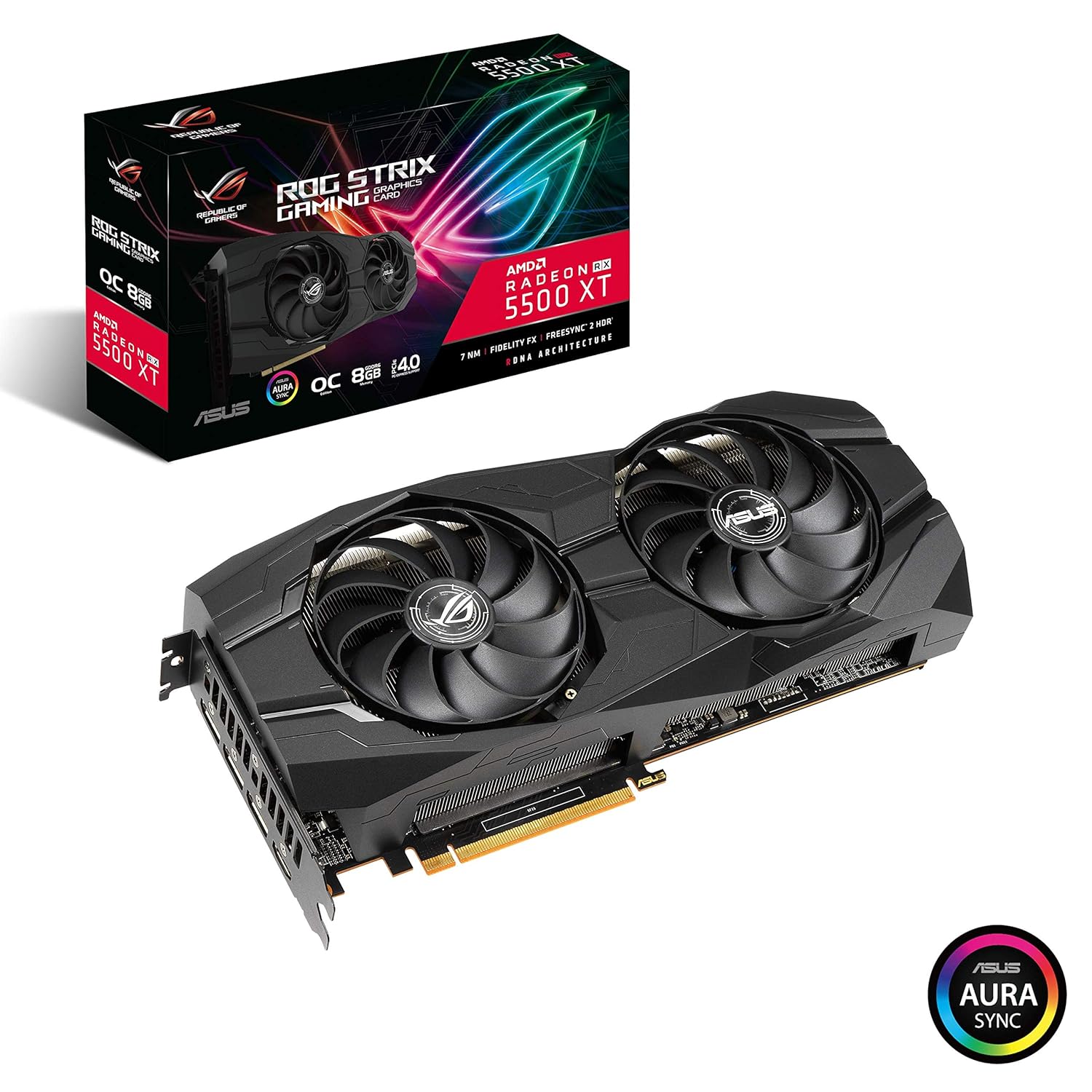 ๐๐ผ ASUS ROG Strix AMD Radeon RX 5500 XT OC Edition, Scheda video Gaming, 8GB GDDR6, HDMI, DisplayPort, Ideale per Gaming FullHD, Ventole AxialTech, Backplate in Metallo, Tecnologia Auto-Extreme