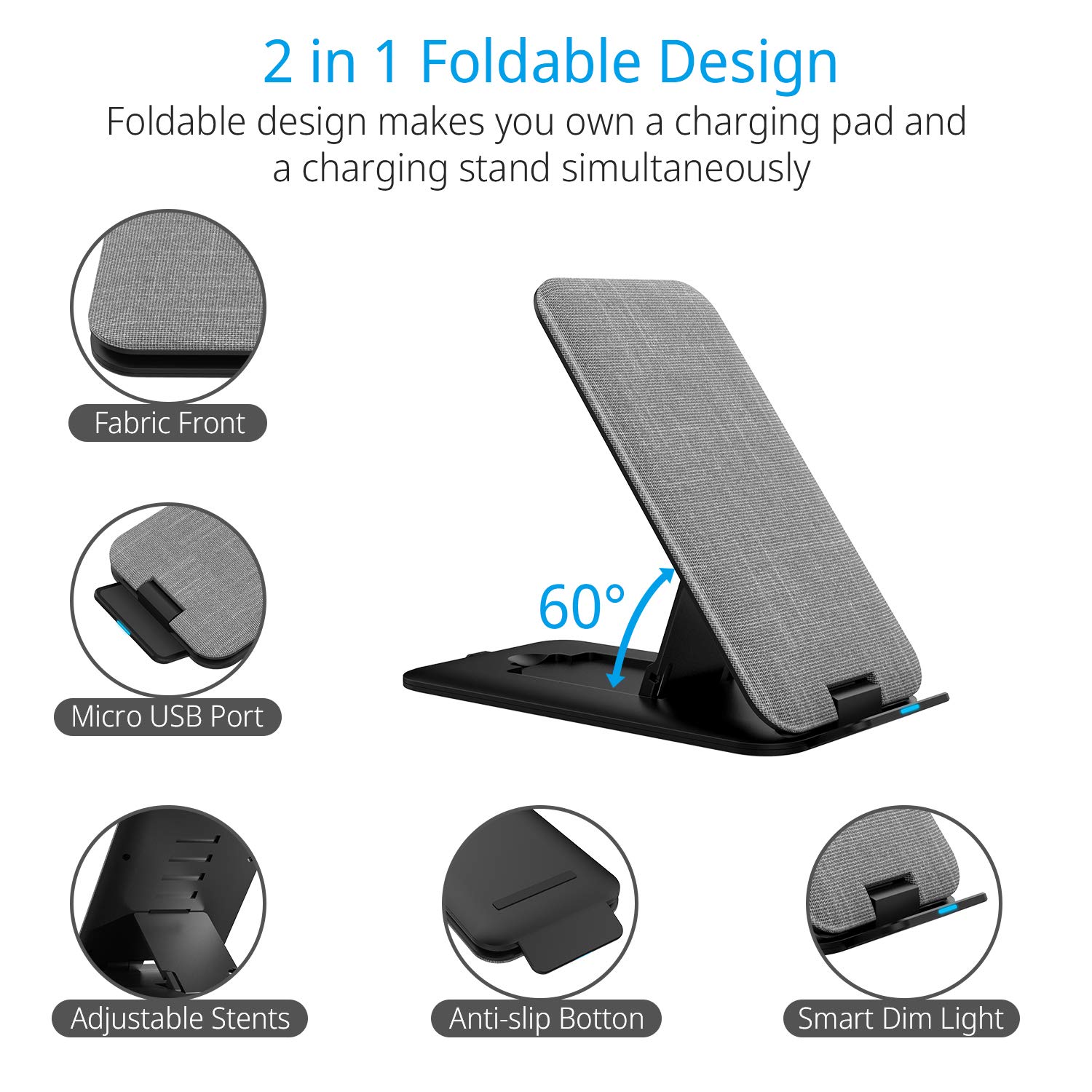 👉🏻 Caricatore Wireless Lecone con standard QI e ricarica veloce fino a 10W pieghevole - Occorre usare un caricatore compatibile QC 3 per avere la ricarica rapida! - Finiture in tessuto - Multi-angolo: Supporta la ricarica verticale e orizzontale, che è possibile caricare in orizzontale mentre si guarda un video e caricare in verticale durante l'uso quotidiano.