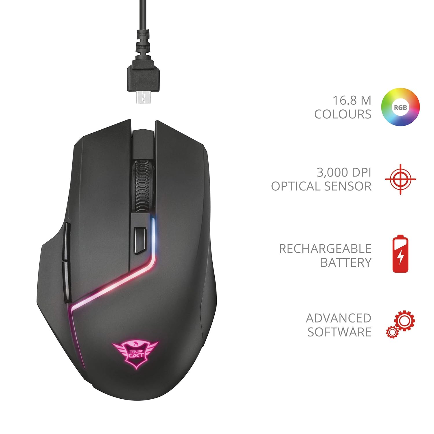 ๐Ÿ‘‰๐ŸปTrust Gaming GXT 161 Mouse da Gioco Wireless con Batteria Ricaricabile Integrata e Illuminazione RBG, Sensore Ottico 3.000 DPI