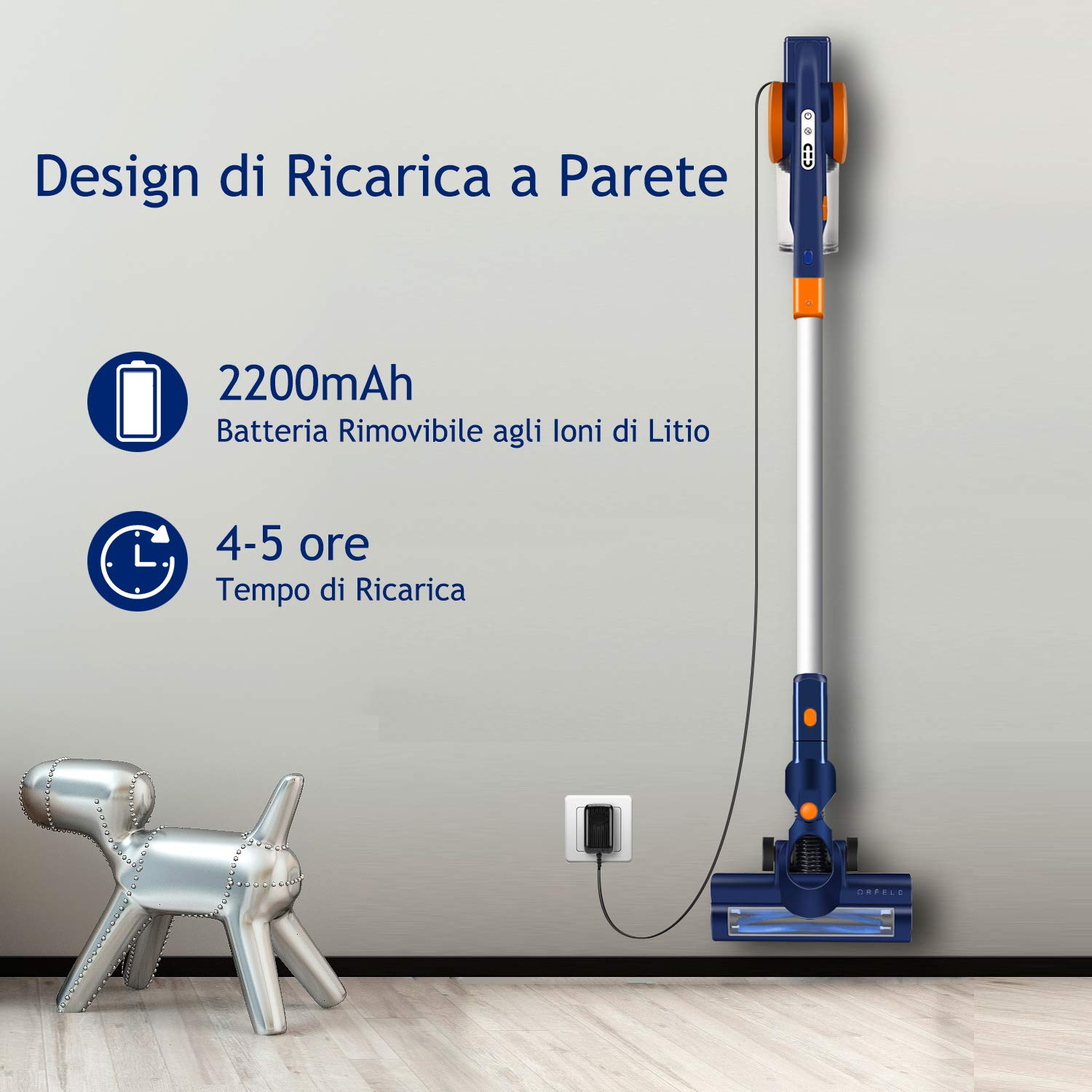 ๐๐ป Orfeld Aspirapolvere Senza fili, Scopa Elettrica, 2 in 1 con Aspirazione 16000 Pa, Autonomia Fino a 50 Minuti, 2 Regolabile Velocitร , Batteria Rimovibile, Filtro HEPA Lavabile, Luci a LED