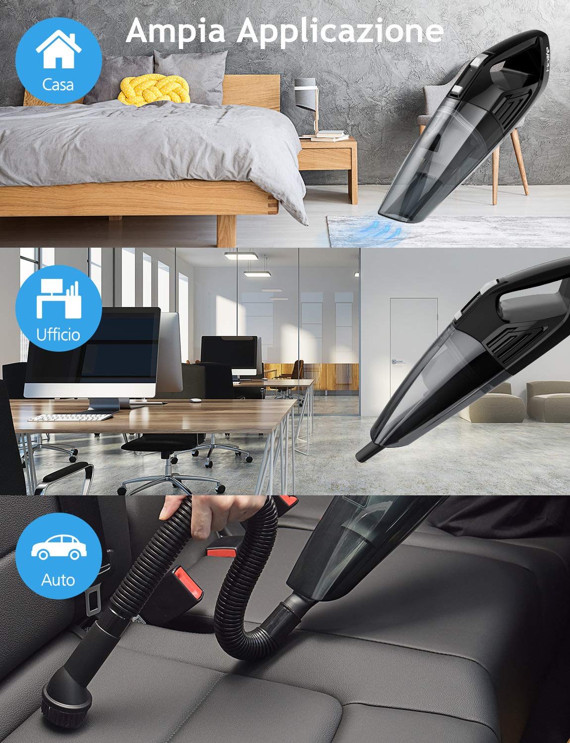 ๐๐ผ Aspirabriciole Senza Fili, Holife Aspirapolvere Portatile Potente (4000Pa) Autonomia di 20min /Ricarica Rapida, Diversi Accessori per Lavori Differenti, Secco/Umido, Caricatore a Parete per Casa/Auto, Nero