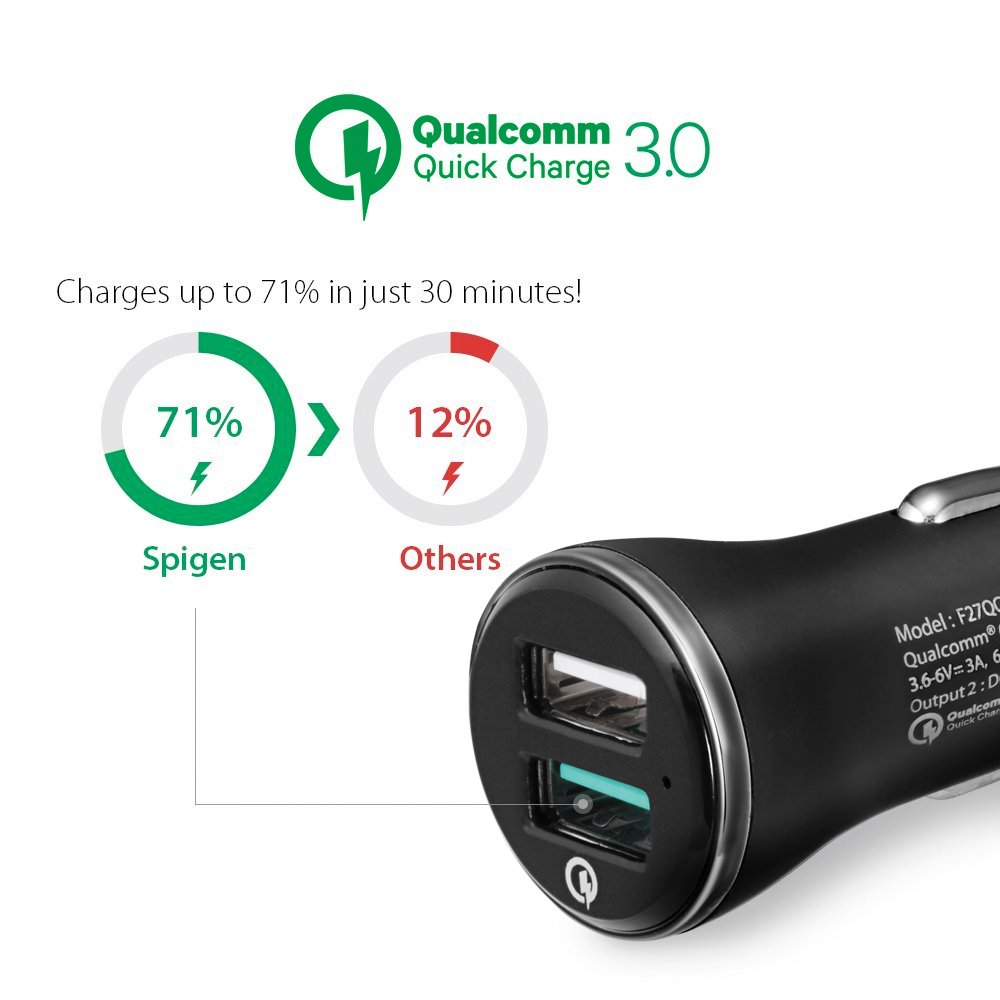 ๐Ÿ‘‰๐Ÿผ Spigen Essential F27QC Caricatore Auto per Smartphone coin due porte USB di cui una Quick Charge 3.0