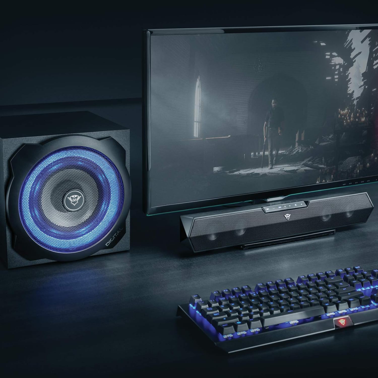 ๐๐ผ Trust Tytan Gaming GXT 668 Soundbar 2.1 con Set Illuminato LED BLU Subwoofer e Altoparlanti, Nero