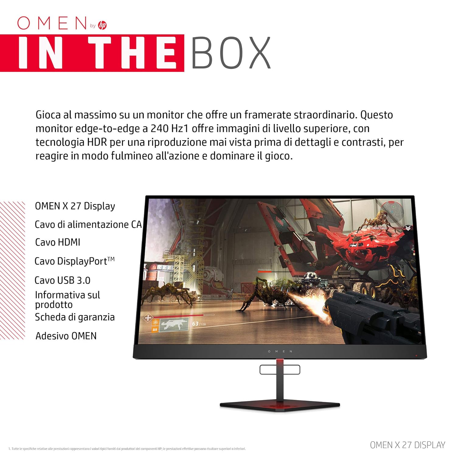 ๐๐ผ HP OMEN X 27 Monitor Gaming TN, Schermo 27" QHD, Risoluzione 2560 x 1440, Tecnologia AMD FreeSync 2 HDR, Tempo Risposta 1 ms Overdrive, Frequenza 240 Hz, Regolabile in Altezza