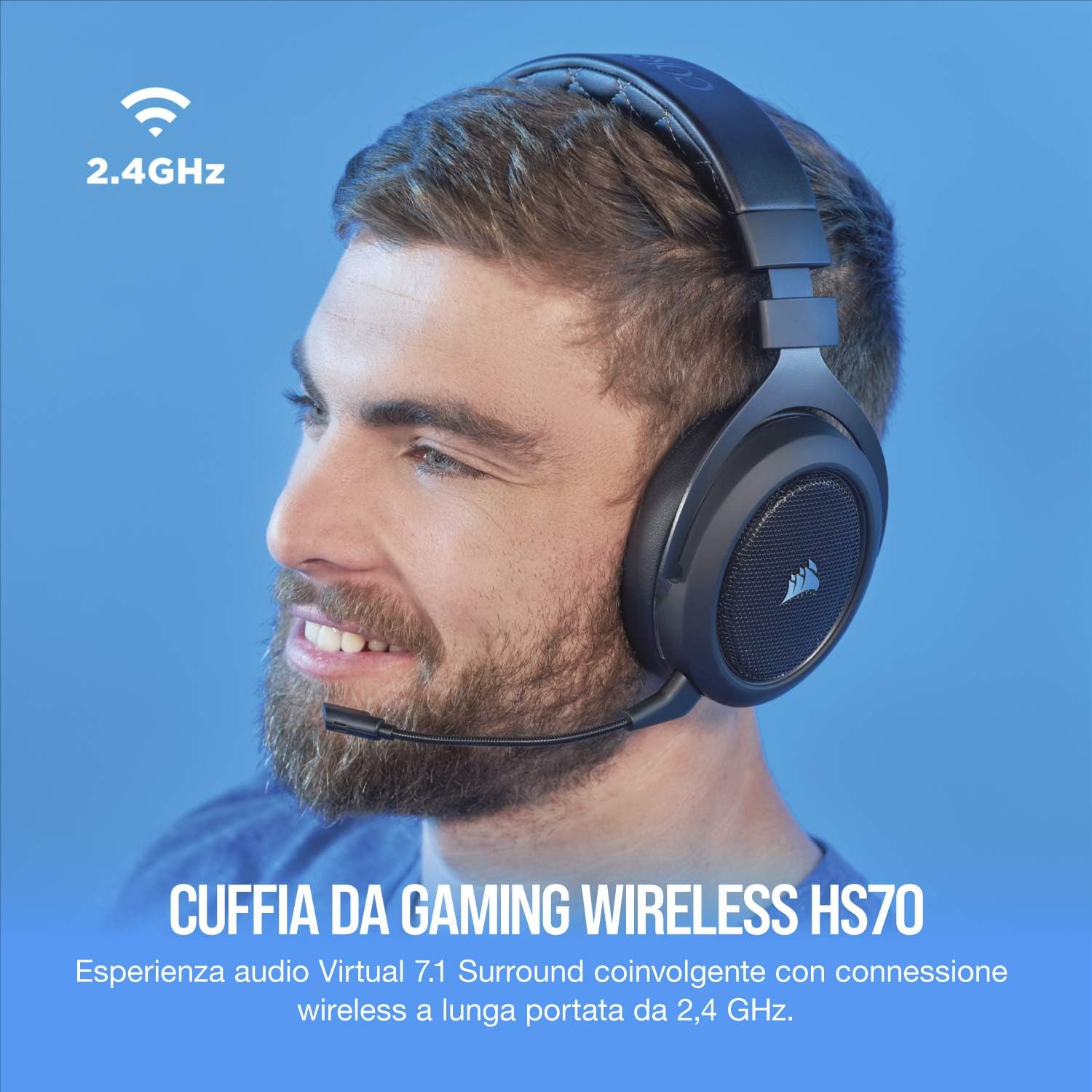 ๐Ÿ‘‰๐Ÿผ Corsair HS70 Wireless Cuffie Gaming 7.1 Surround Sound, con Microfono Staccabile, per PC/PS4, Carbonio