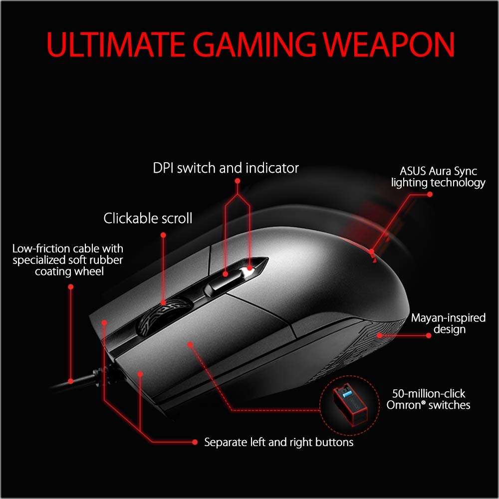 ππΌ ASUS ROG Strix Impact Mouse Gaming Ottico per MOBA, Ambidestro, Interruttori Omron, Aura SYNC RGB