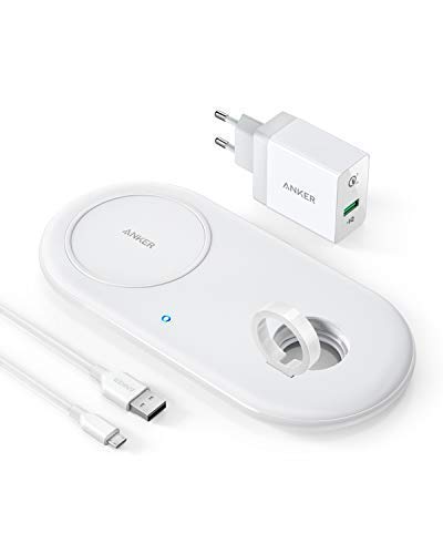👉🏼 Anker PowerWave+ Pad con Supporto Orologio, Caricatore Wireless Certificato Qi 2 in 1 con Supporto per Apple Watch, cavo e caricatore da muro Quick Charge 3 compresi in confezione