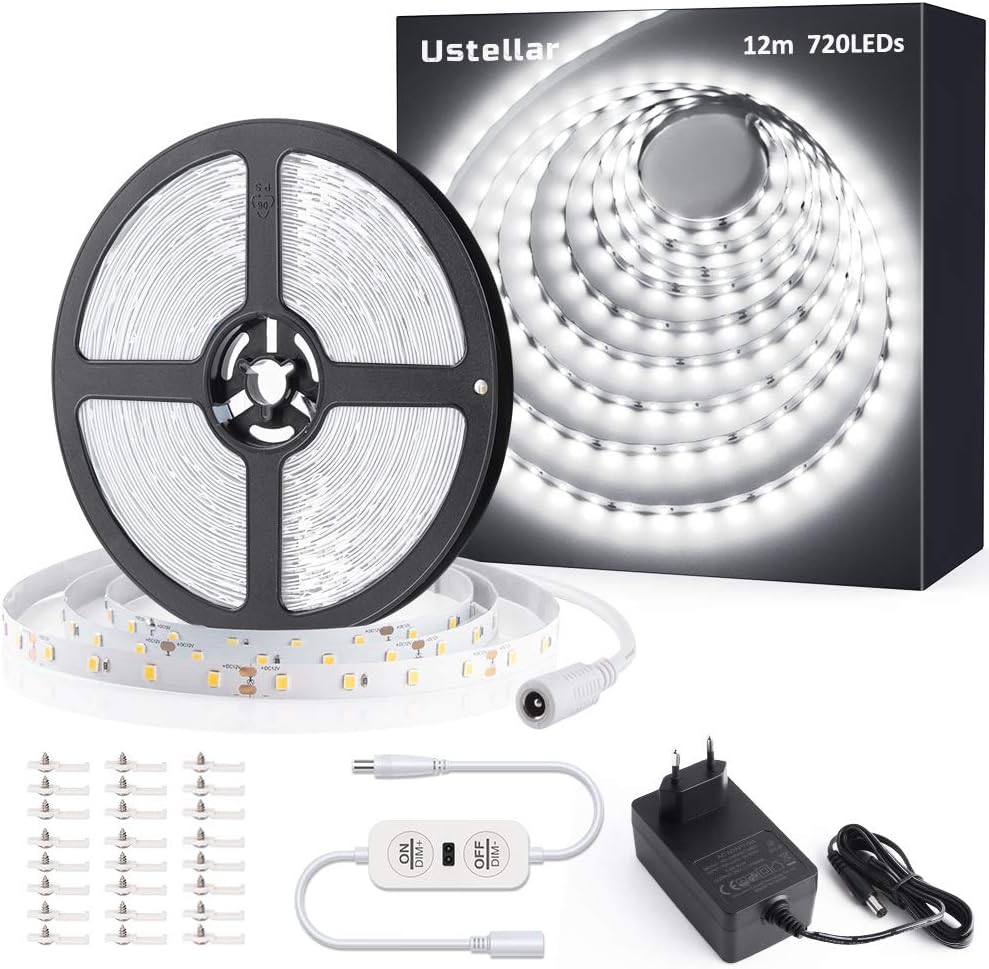 ๐๐ป 12M Striscia LED 24V, Ustellar 720 Unitร LED Dimmerabile Striscia Luce Bianco 6000K SMD2835 3600LM, Illuminazione Interna per Soggiorno Cucina Camera