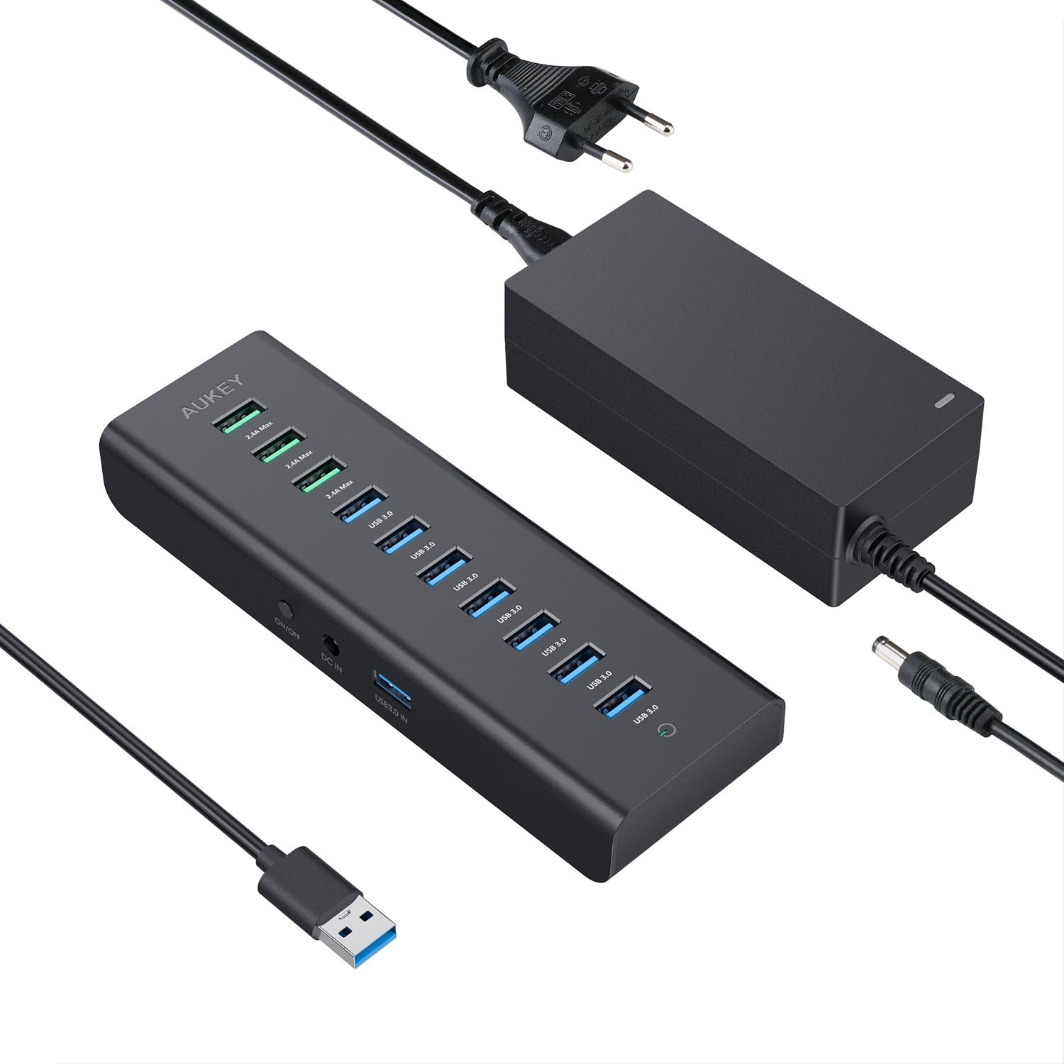 👉🏻 AUKEY Hub USB Alimentato 7 Porte USB 3.0 e 3 Porte di Carica 2.4A con Adattatore d'Alimentazione 48W, On/off Switch e Cavo USB 3.3ft / 1m Hub USB 3.0 per Windows XP / 7/8 / 10, Mac OS, Linux, ECC