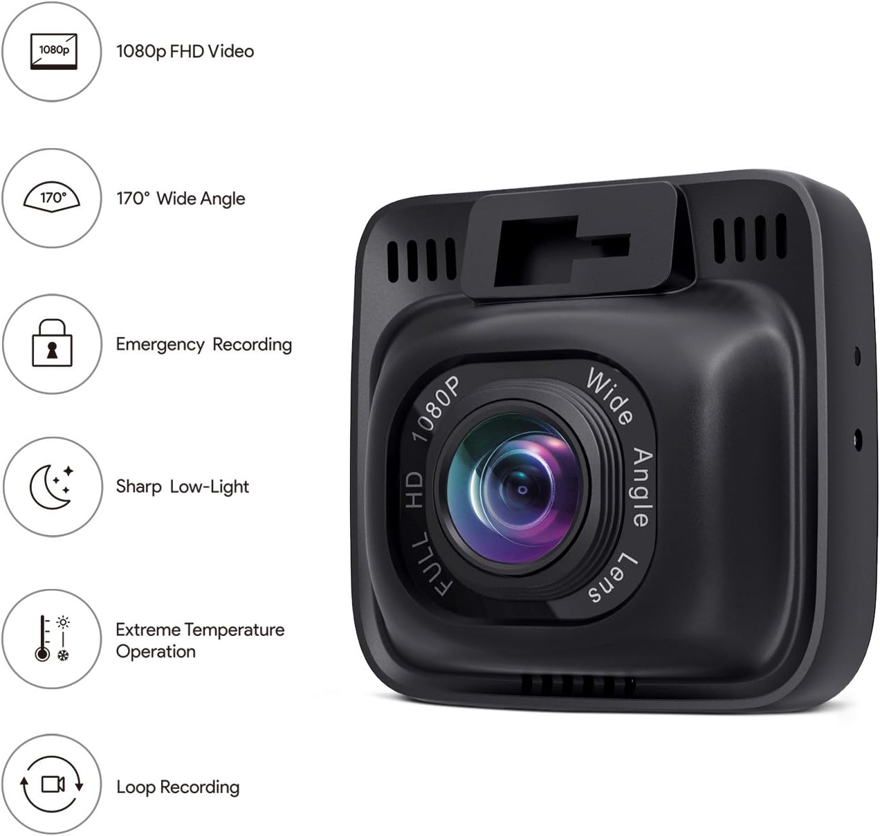 ๐๐ป AUKEY Dash Cam FHD 1080P Telecamera per Auto Obiettivo Grandangolare di 170 Gradi Super-Condensatore Dashcam con WDR, Rilevatore di Movimento, Loop, G-Sensor e Caricatore USB da Auto a 2-Porta