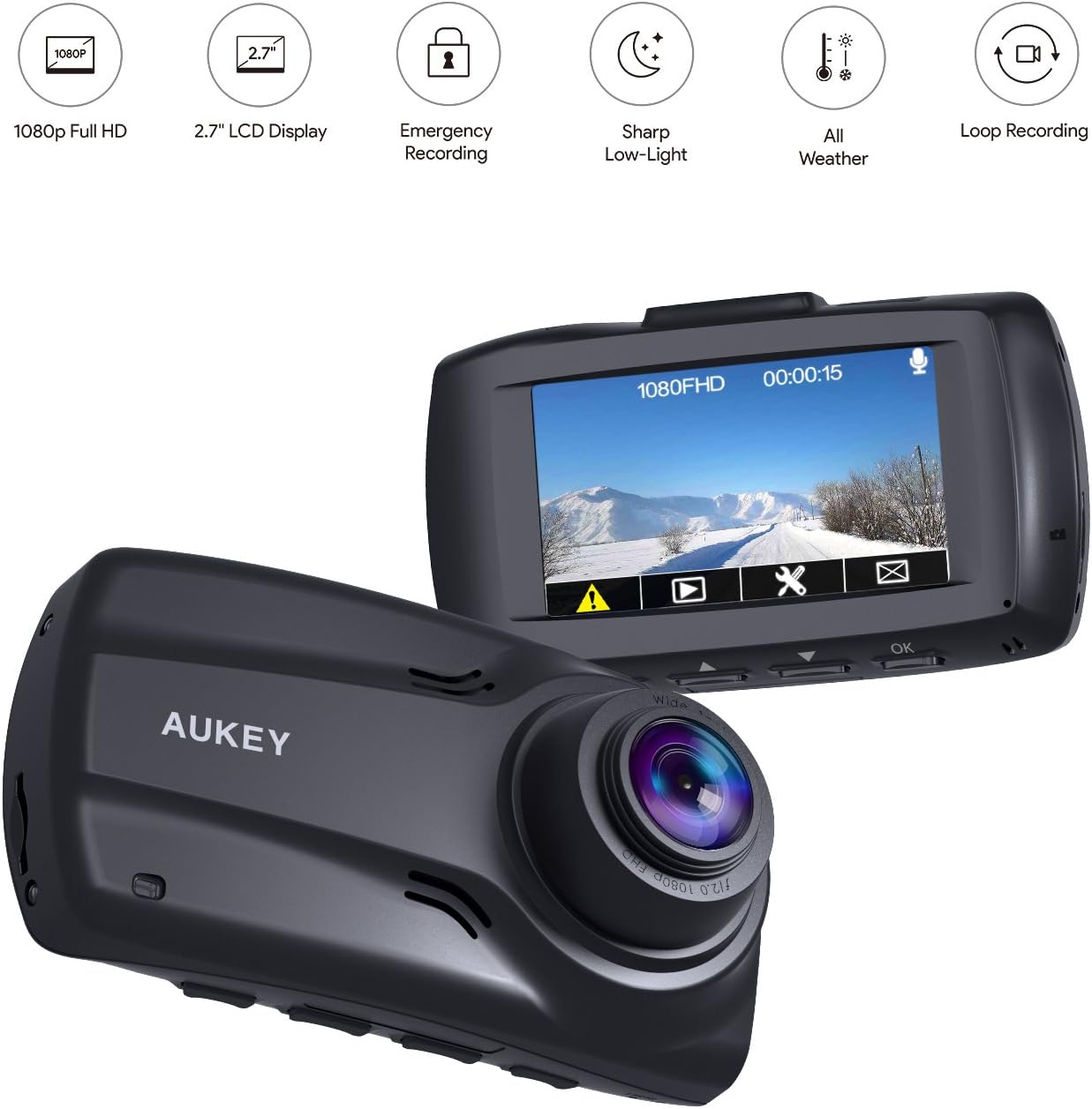 ๐๐ผ AUKEY Doppia Dash Cam da 1080p con Schermo da 2,7โโ, Videocamera Full HD Frontale e Posteriore, Obiettivo Grandangolare da 170ยฐ per 6 Corsie di Traffico, G-sensor e Caricatore per Auto a due Porte