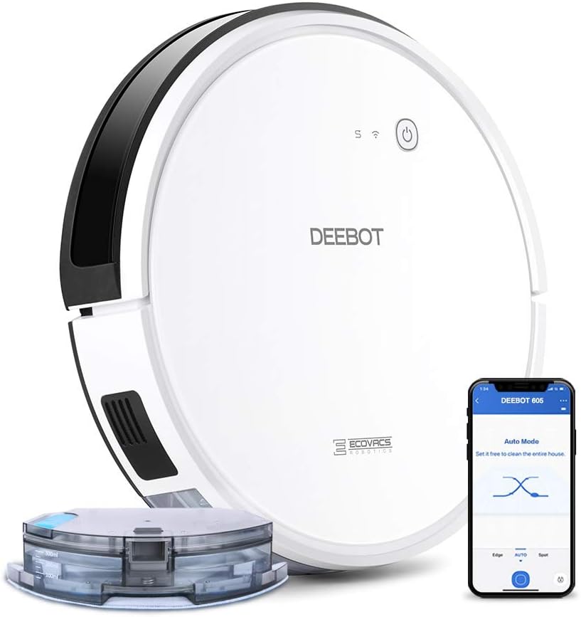 ๐๐ป ECOVACS Robotics DEEBOT 605 โ Robot Aspirapolvere con pulizia sistematica, Moduli intercambiabili 2 in 1: Aspira o Lava, Controllo tramite App - Durata fino a 110 min