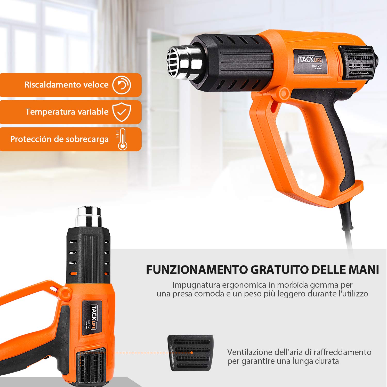 ππΌ Tacklife Pistola ad Aria Calda 2000W - Temperatura Regolabile 50-600β Pistola Termica, con 9 quadranti, 3 portate d'aria, 4 Ugelli con Raschietto, HGP74AC