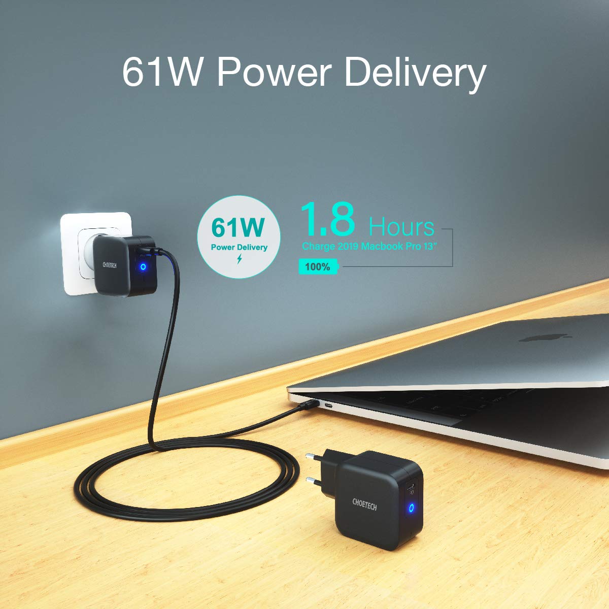 ๐๐ป CHOETECH Caricatore USB C con Tecnologia GaN, 61W Power Delivery Caricatore da Muro - Ricarica i notebook USB-C tra cui Dell XPS 13 e MacBook Air 2018 a tutta velocitร
