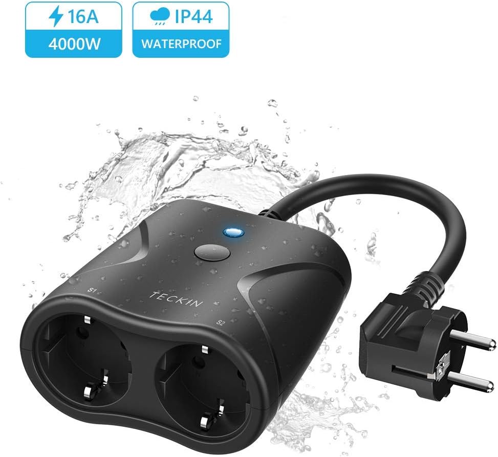 ๐๐ผ Doppia Presa da esterno Wi-Fi Teckin, Impermeabile IP 44 contro pioggia (non immersioni) e con controlli singoli. Controllo Remoto tramite App, Compatibile con Alexa, IFTTT, Google Assistant, Adatto per Esterno, Giardino, Campeggio