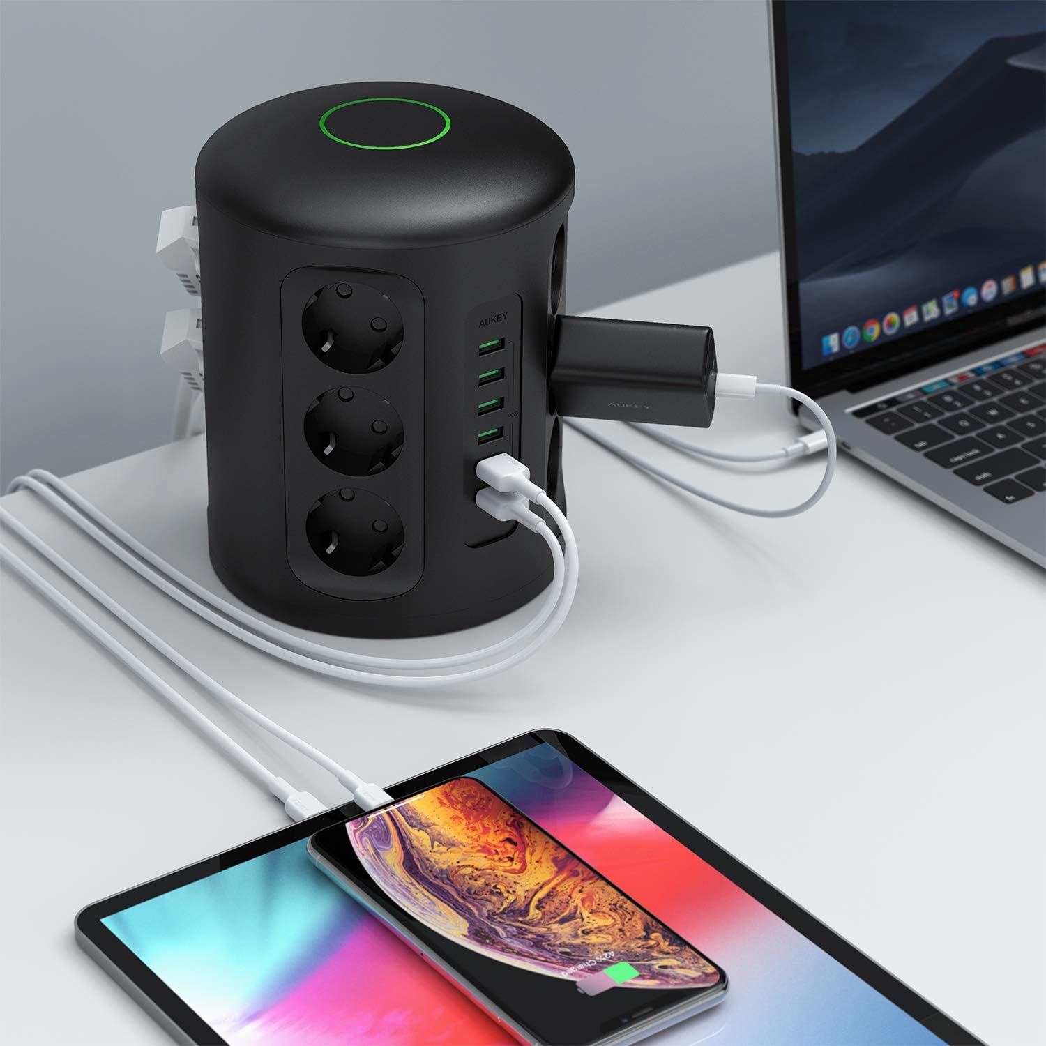 ๐Ÿ‘‰๐ŸปAUKEY Multipresa Verticale Ciabatta Elettrica con protezione da sovraccorrente, 6 porte di carica USB e 12 prese con cavo di 2 metri, Protezione 1500J