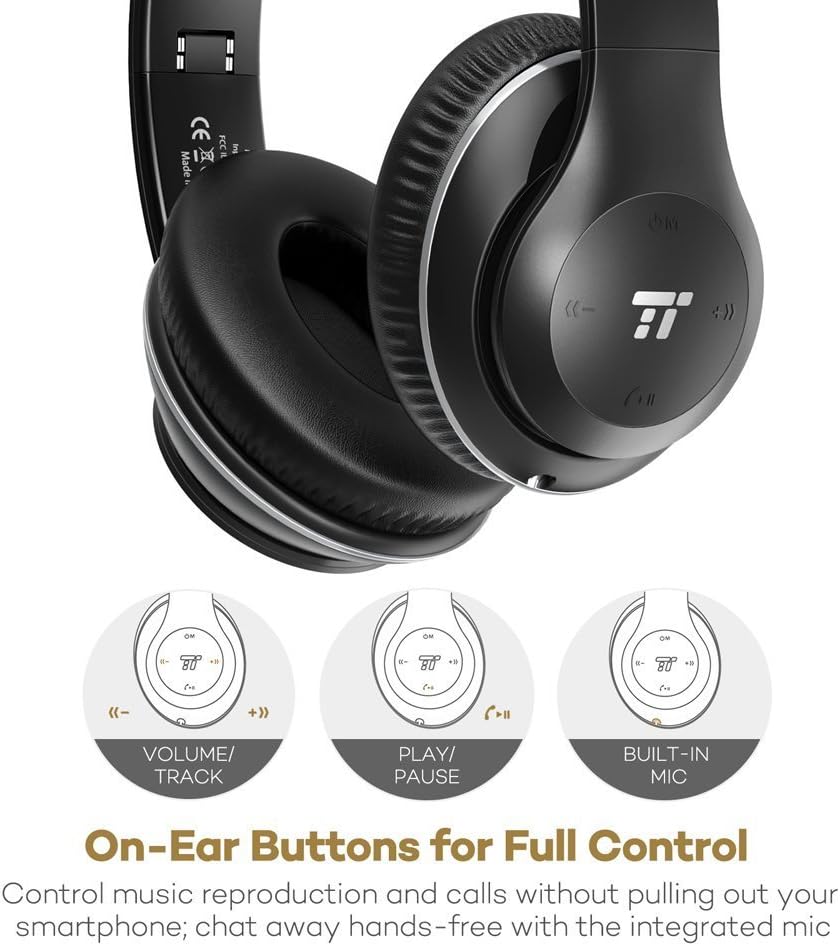 ๐Ÿ‘‰๐Ÿป Le cuffie Bluetooth Over ear TaoTronics - Con cuscinetti in Memory Foam, Codec AAC, Due Driver da 40mm, Equalizzatore per Bassi, 15 Ore di Riproduzione anche con cavo