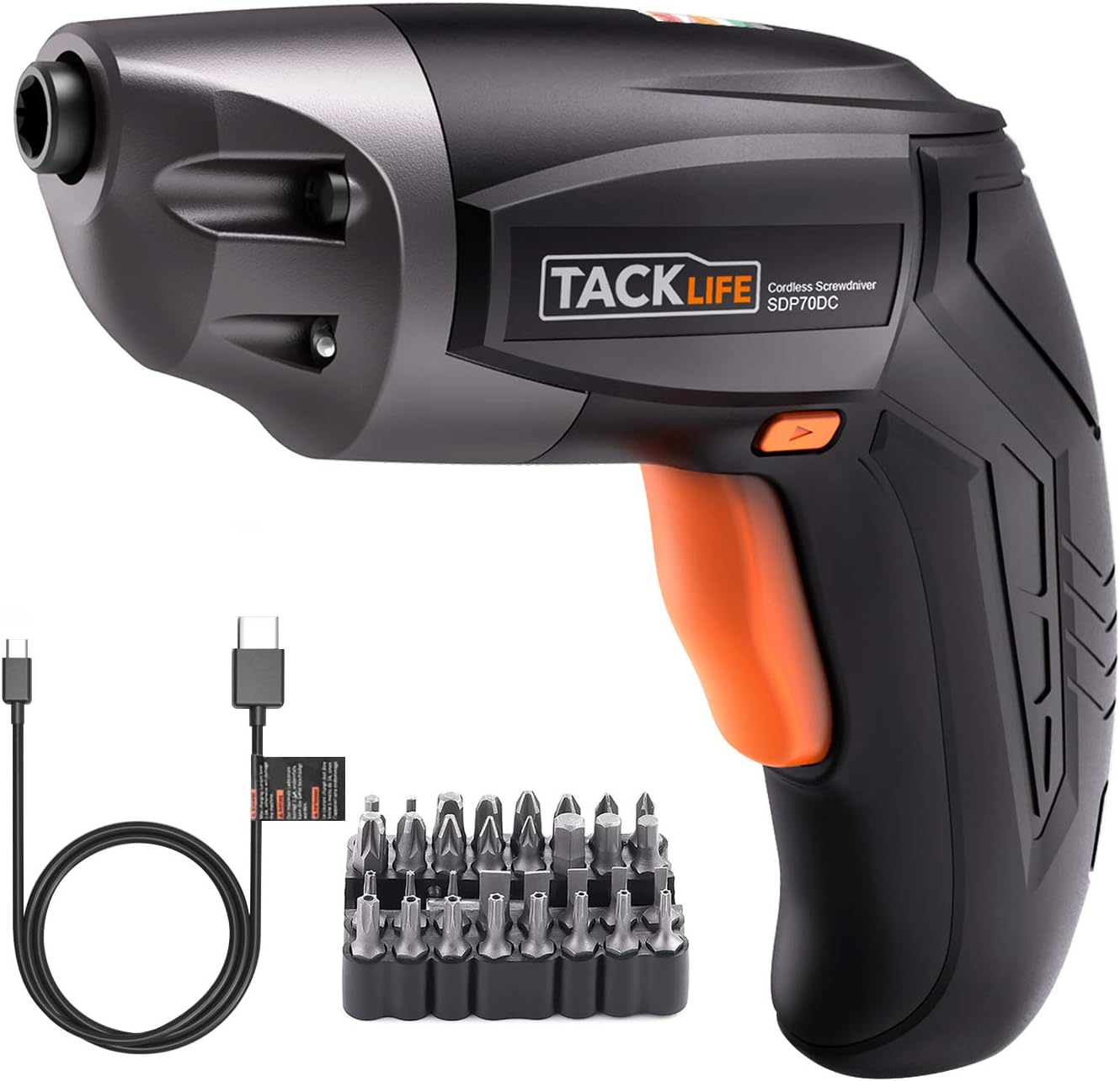 ๐๐ผ Tacklife Mini Avvitatore SDP70DC a Batteria Ioni di Litio 2000mAh Avvitatore Elettrico 3,6V con carica USB, Luce LED, 32 Punte, 1 asta di ricarica USB, Per Assemblaggio Mobili