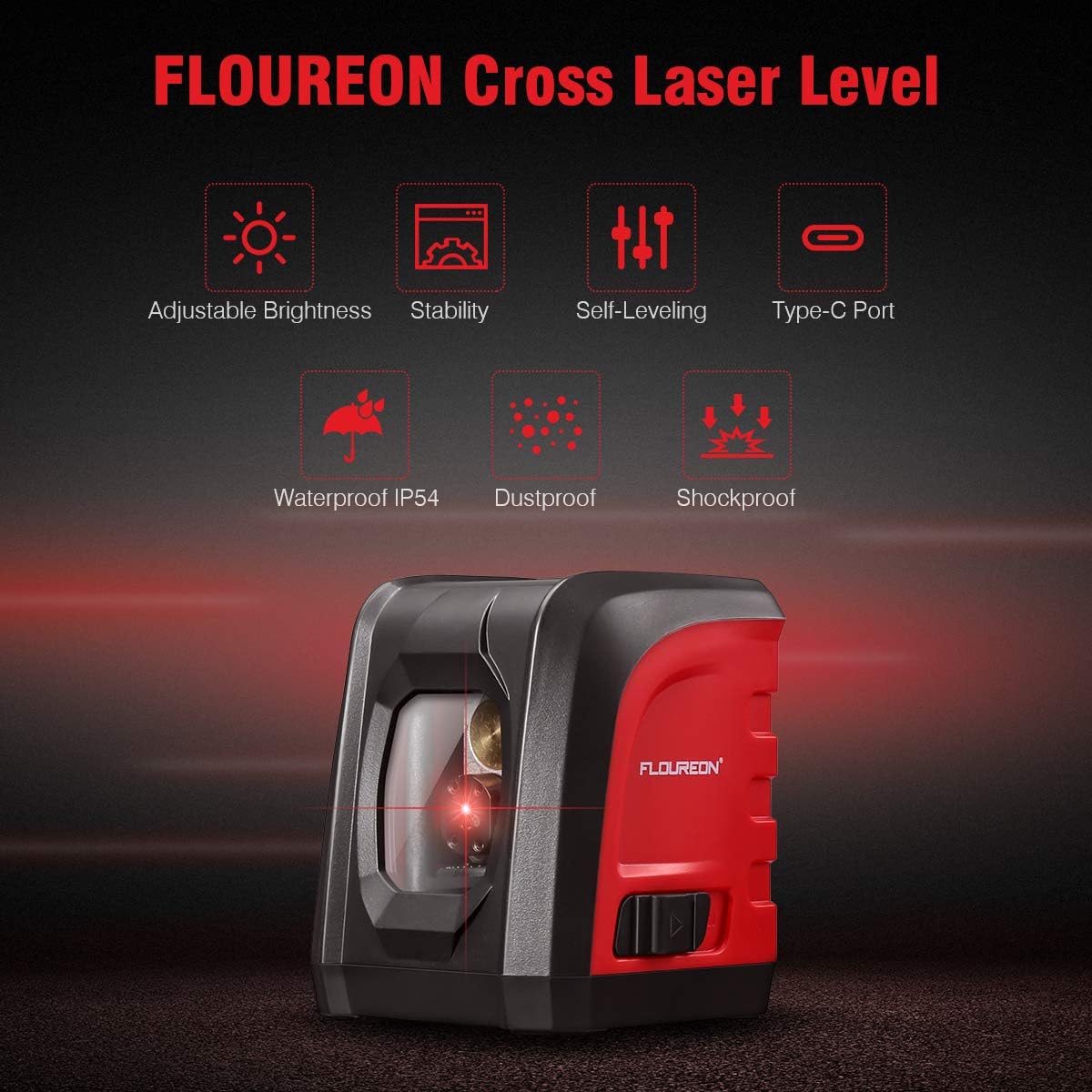 ๐๐ผ FLOUREON Livella Laser Autolivellante, Linea Orizzontale e Verticale, Laser a Croce Autolivellante, Alimentato da Cavo Tipo C o Batterie (Incluse)
