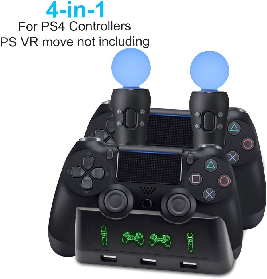 ๐๐ผ AMANKA Docking Station per PS4/PS Slim/Pro 4 in 1 - Stazione di Ricarica per due controller PS4 e due PS VR