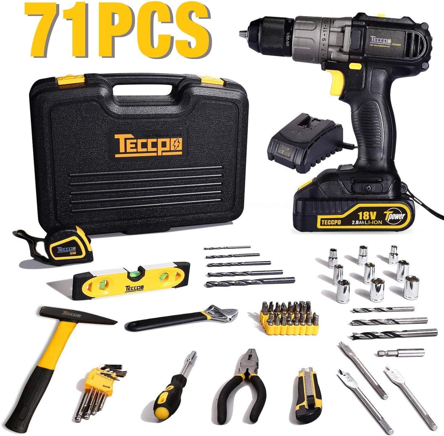 ๐Ÿ‘‰๐Ÿผ Avvitatore a Batteria, TECCPO Avvitatore senza fili, 71 Pezzi Accessori, 2 Velocitร , Batteria al Litio 2.0Ah, Metallo Mandrino da 10mm Autobloccante, Ricarica Rapida in 1 Ora, con valigetta