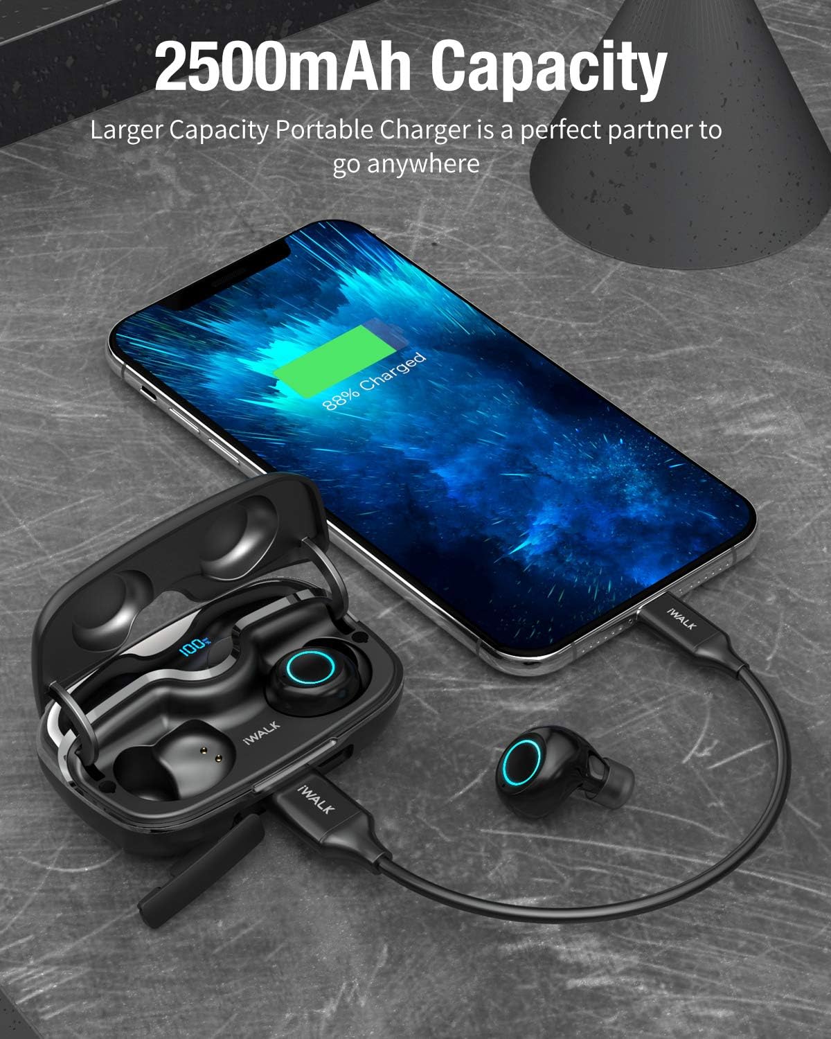 ๐Ÿ‘‰๐Ÿผ Cuffie Senza fili Bluetooth 5.0 iWALK -Design ergonomico con Bluetooth 5.0, connettivitร  stabile e controlli completi - Case di ricarica portatile da 2500 mAh fornisce 80 ore di backup con un'autonomia massima di 5 ore per ogni singola carica - Inoltre funziona anche da Powerbank