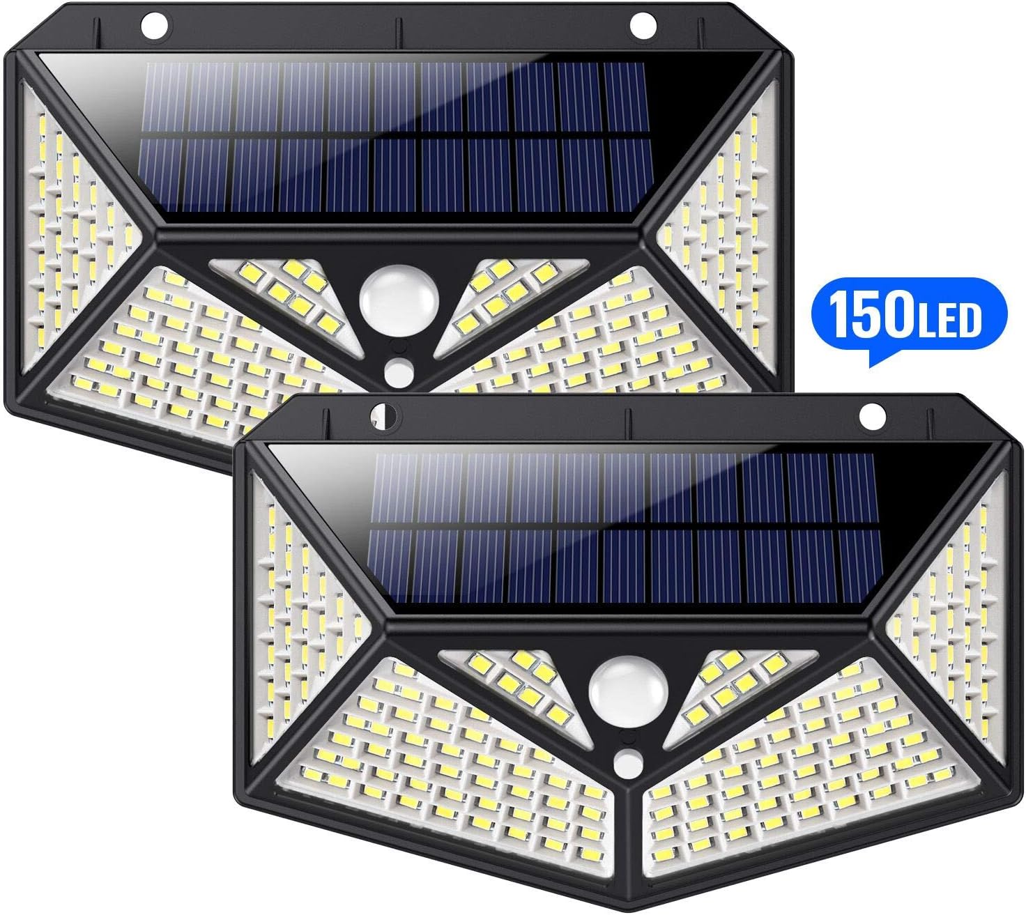 👉🏻HETP Luci Solari Esterno [Illuminazione Omnidirezionale a Sei Lati] 150 led Lampada solare con Sensore di Movimento Luce Solare Impermeabile ip65 Luci da Esterno Energia Solare - 2 pezzi