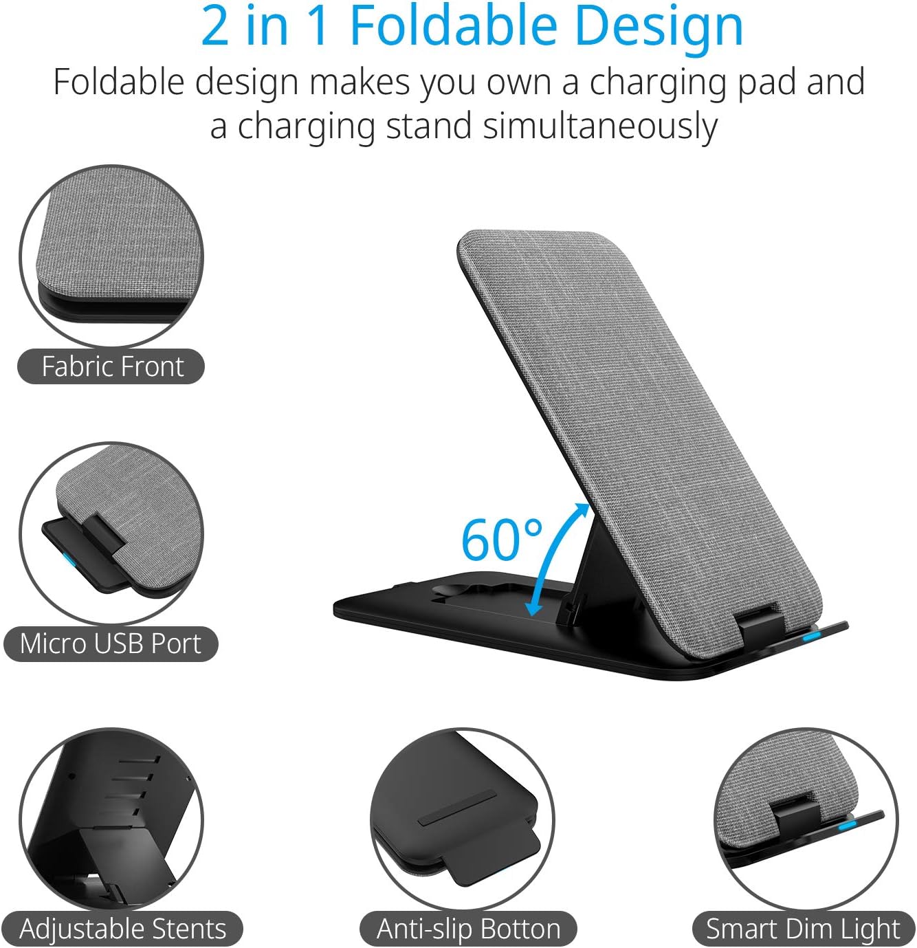 ๐๐ป Caricatore Wireless Lecone pieghevole con standard QI e ricarica veloce fino a 10W con stand - Occorre usare un caricatore compatibile QC 3 per avere la ricarica rapida! - Finiture in tessuto