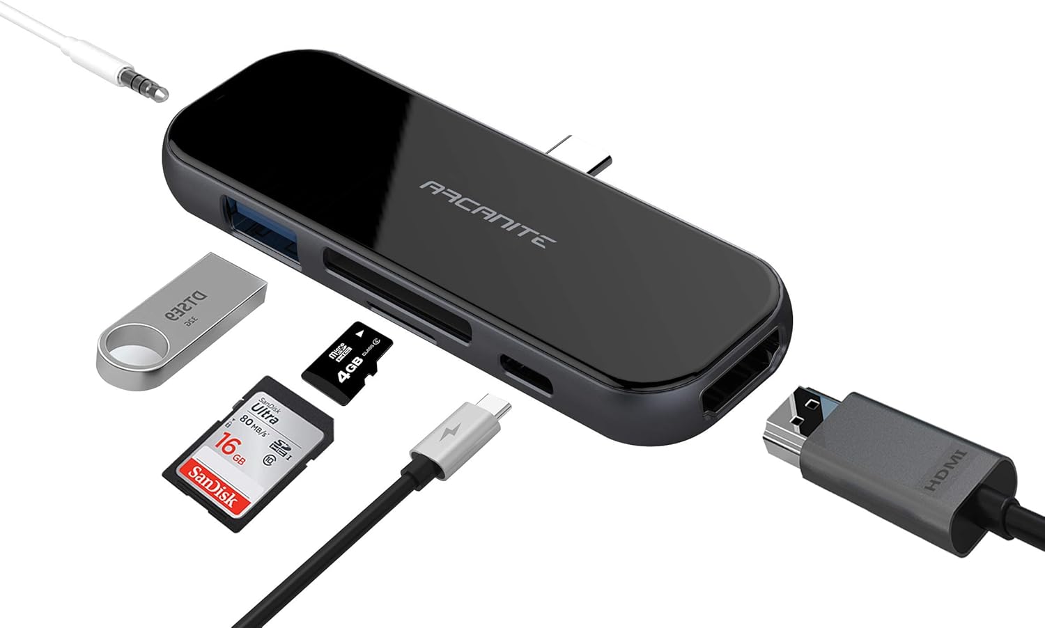 ๐๐ผ ARCANITE, Hub USB-C premium, output 60 W, 4K x 2K HDMI, 1 porta USB 3.0 Type-A, lettore schede microSD e SD, jack audio da 3,5 mm, esterno in alluminio e vetro. Per iPad Pro, LUCN3296