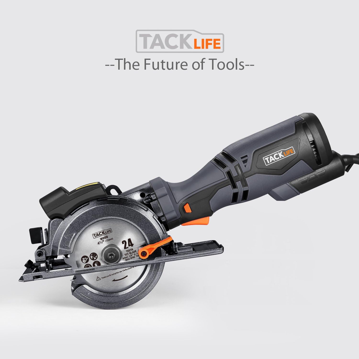 ๐๐ผTACKLIFE Sega Circolare Compatta, 6 Lame (120 mm e 115 mm), Guida Laser, 710 W, Profonditร di taglio 42,9 mm (90ยฐ), 34,9 mm (45ยฐ), Impugnatura in Metallo, Versatile per Legno, Metallo Morbido