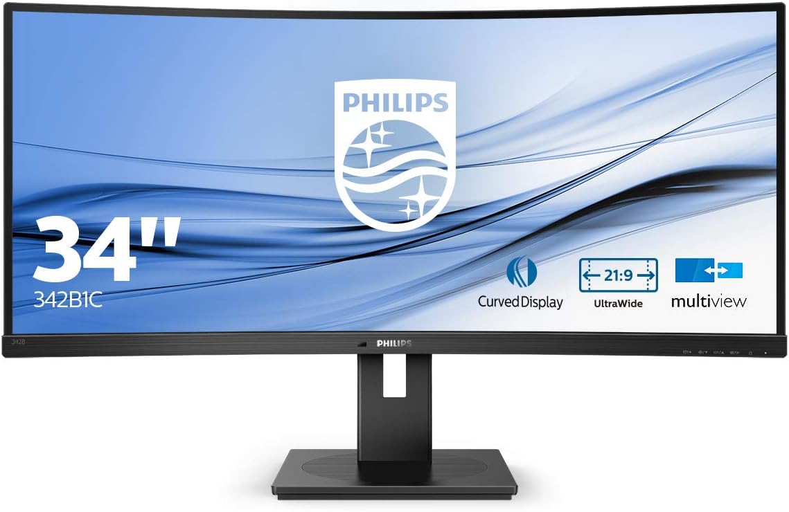 ๐๐ผ PHILIPS 342B1C Gaming Monitor Curvo 34" 21:9, WFHD 2560 x 1080, 75 Hz, Adaptive Sync, Multiview PIP/PBP, Audio Integrato, 2 HDMI, Display Port, Hub USB, Regolabile Ergonomicamente, VESA