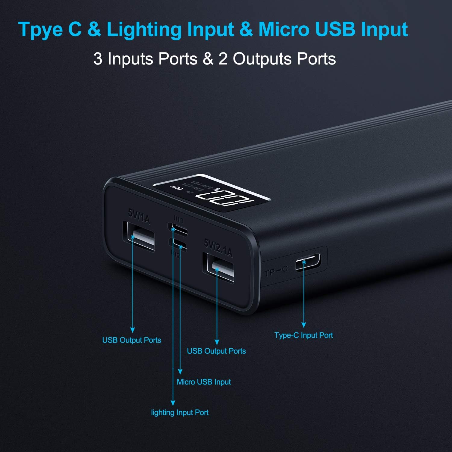 ๐๐ผ Powerbank 20000mAh Beefix - Caricabatterie Portatile Batteria Esterna Carica Rapida Batteria a 3 Porte e 3 ingressi Batteria PowerBank ad Alta capacitร con indicatore di Stato LCD