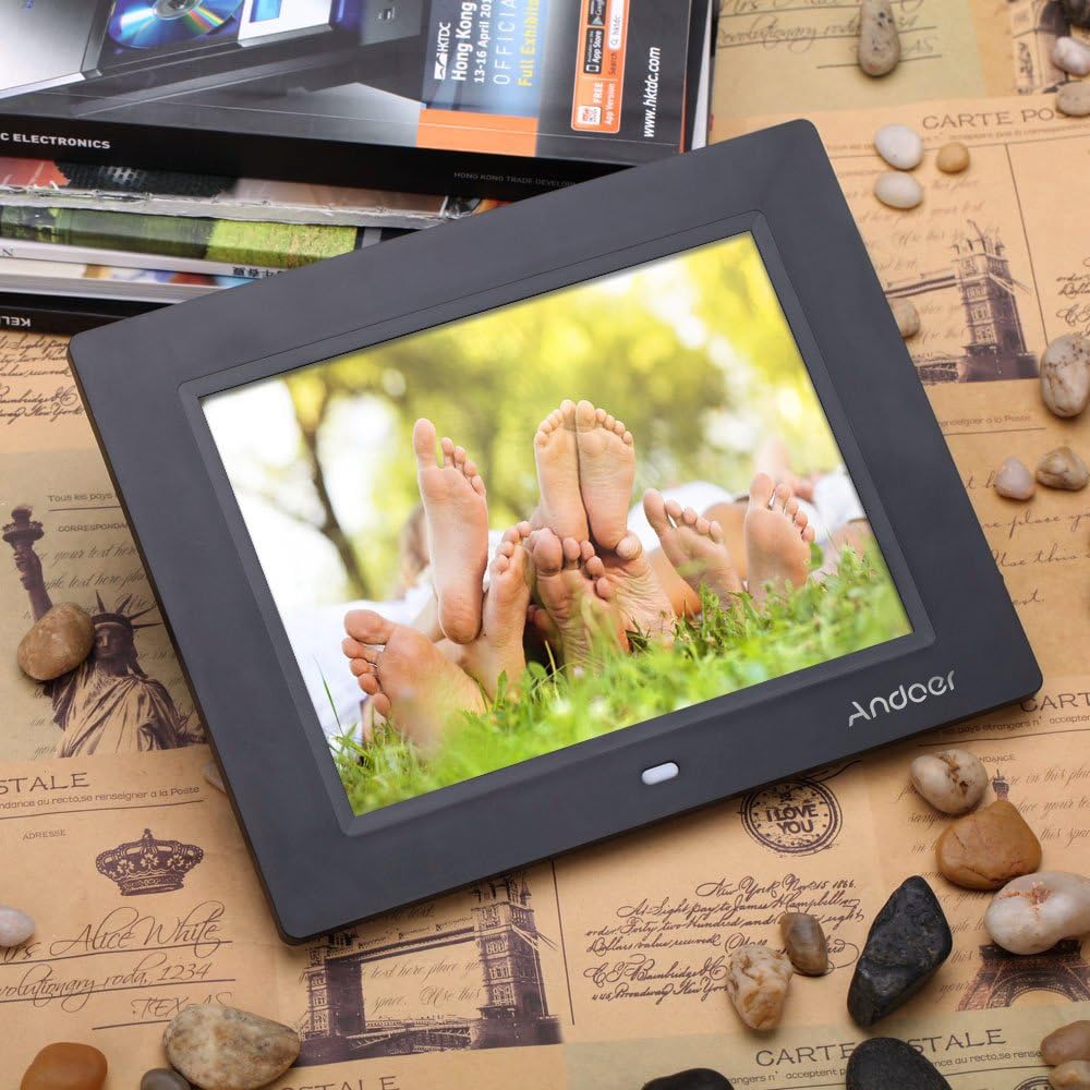 πŸ‘‰πŸ» Andoer - Cornice Digitale con Display da 8'' - Con orologio, calendario, orologio e sveglia. Puoi usarla come un lettore MP3, MP4, E-book, calendario o un semplice orologio. Con ingresso scheda SD e due ingressi USB.
