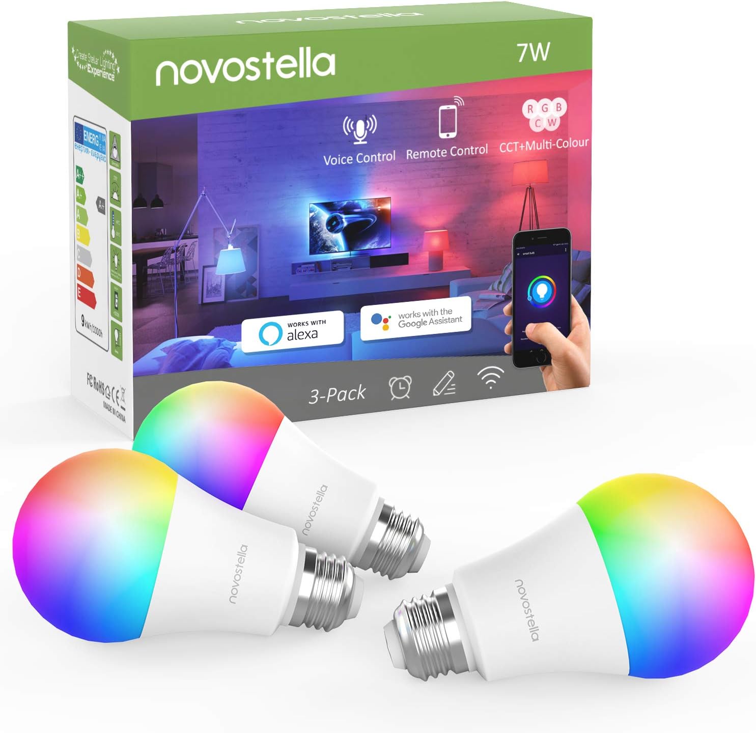 ๐๐ป Le 3 Lampadine Smart LED Intelligenti WiFi Multicolore Novostella E27 Compatibili con Alexa e Google Home - 7W 600 lumen