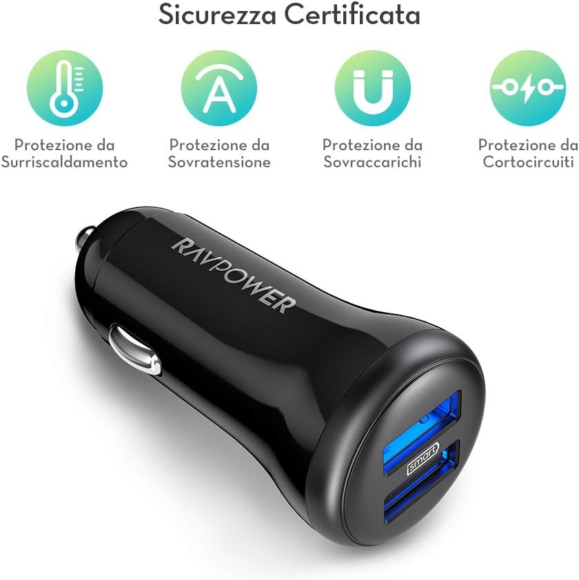๐Ÿ‘‰๐Ÿป Caricatore da Auto con 2 Porte 24W/4.8A MAX, - due porte USB Tecnologia iSmart 2.0
