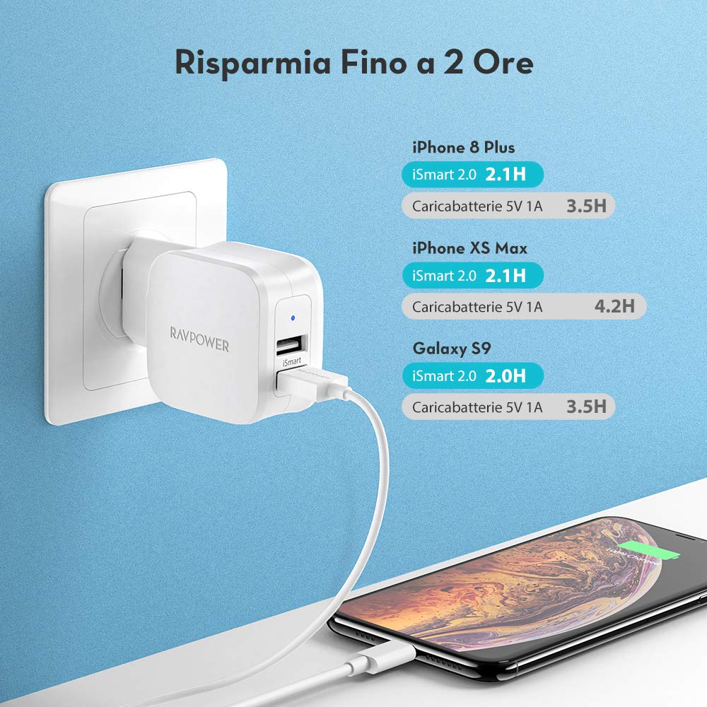 ๐Ÿ‘‰๐Ÿป RAVPower Caricabatterie da Parete Doppia Porta USB da 17W iSmart 2.0